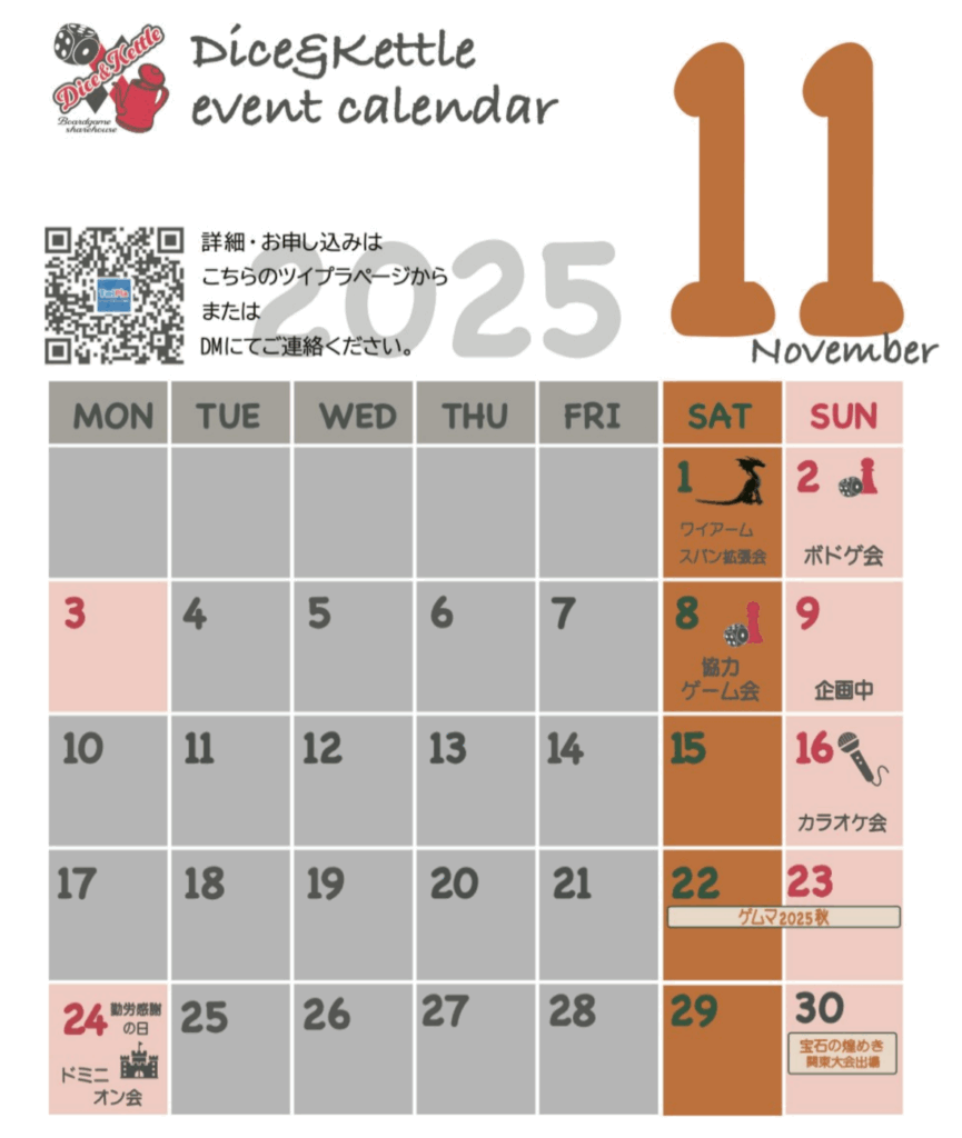 2025年11月にDice&Kettleにて開催予定のイベントをまとめて記載しております。